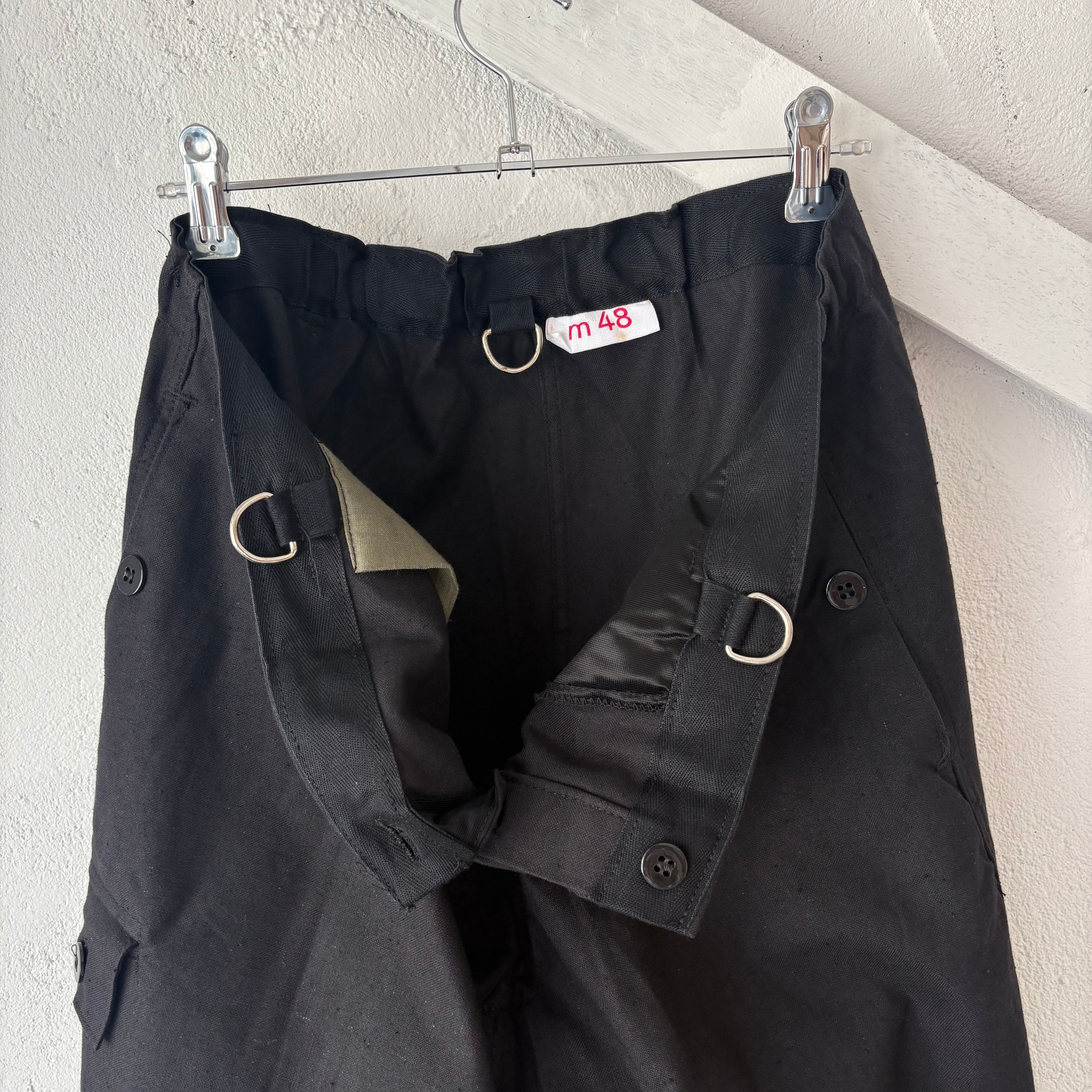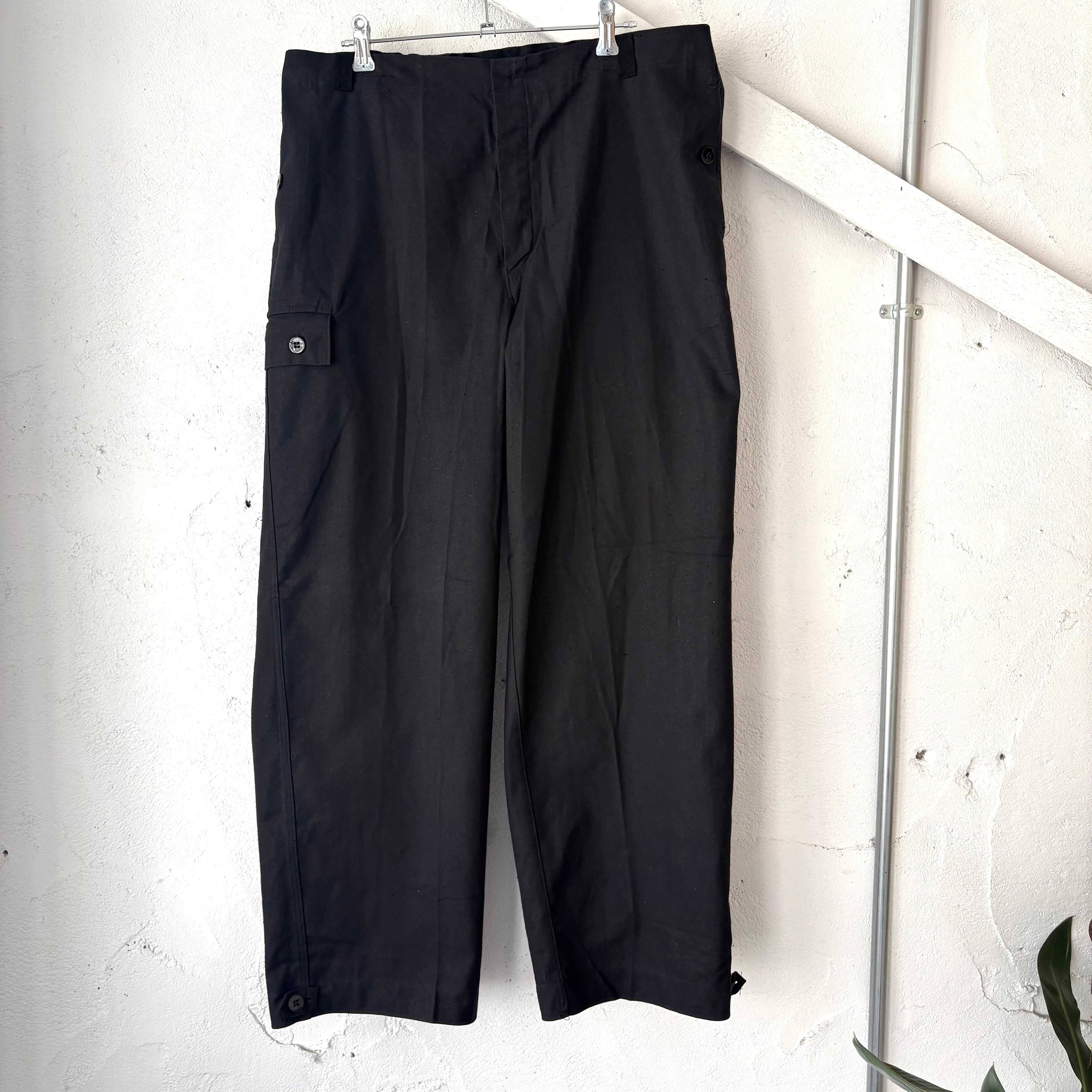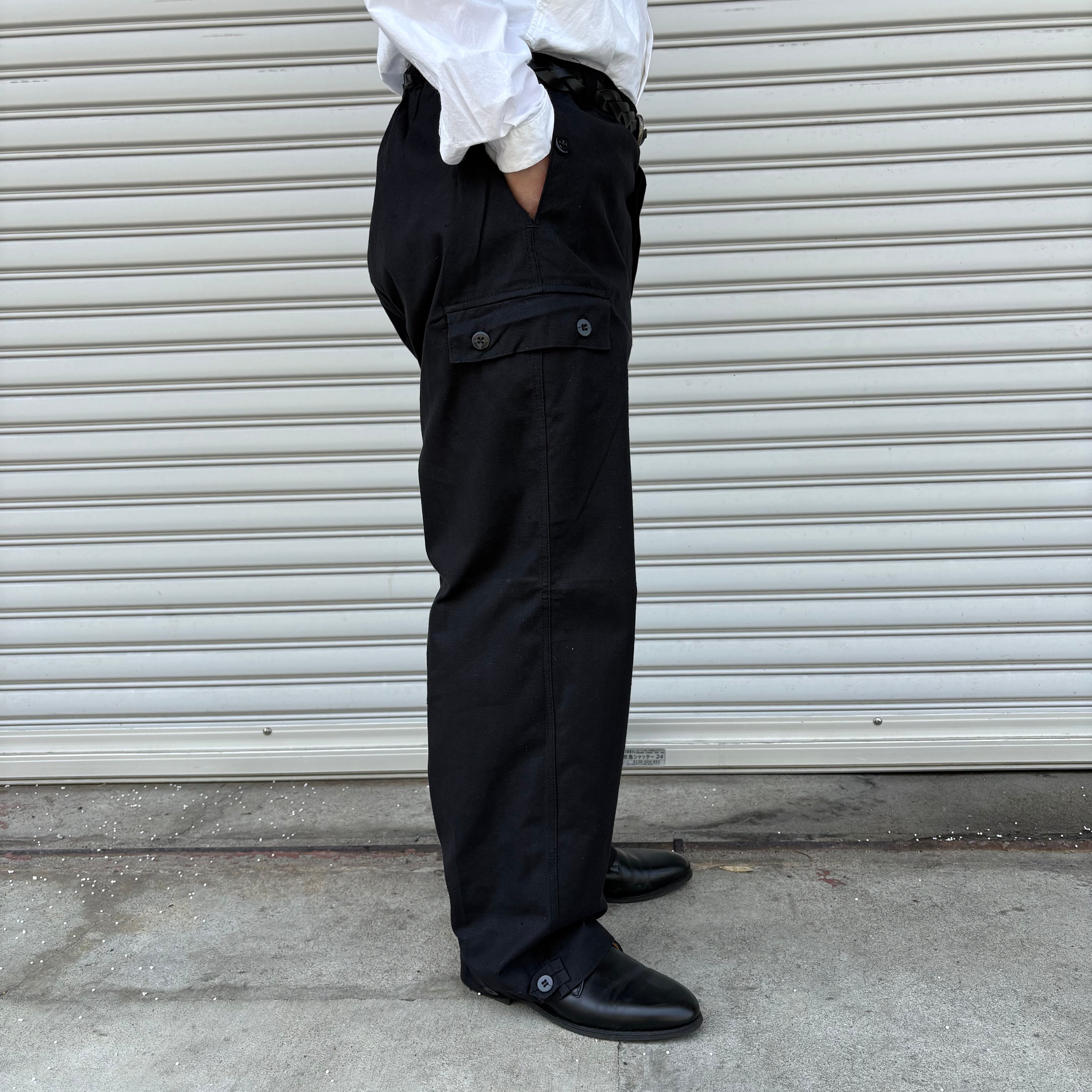 実物新品 デッドストック 東ドイツ軍のリメイクワークオーバーパンツ ブラックの紹介です。