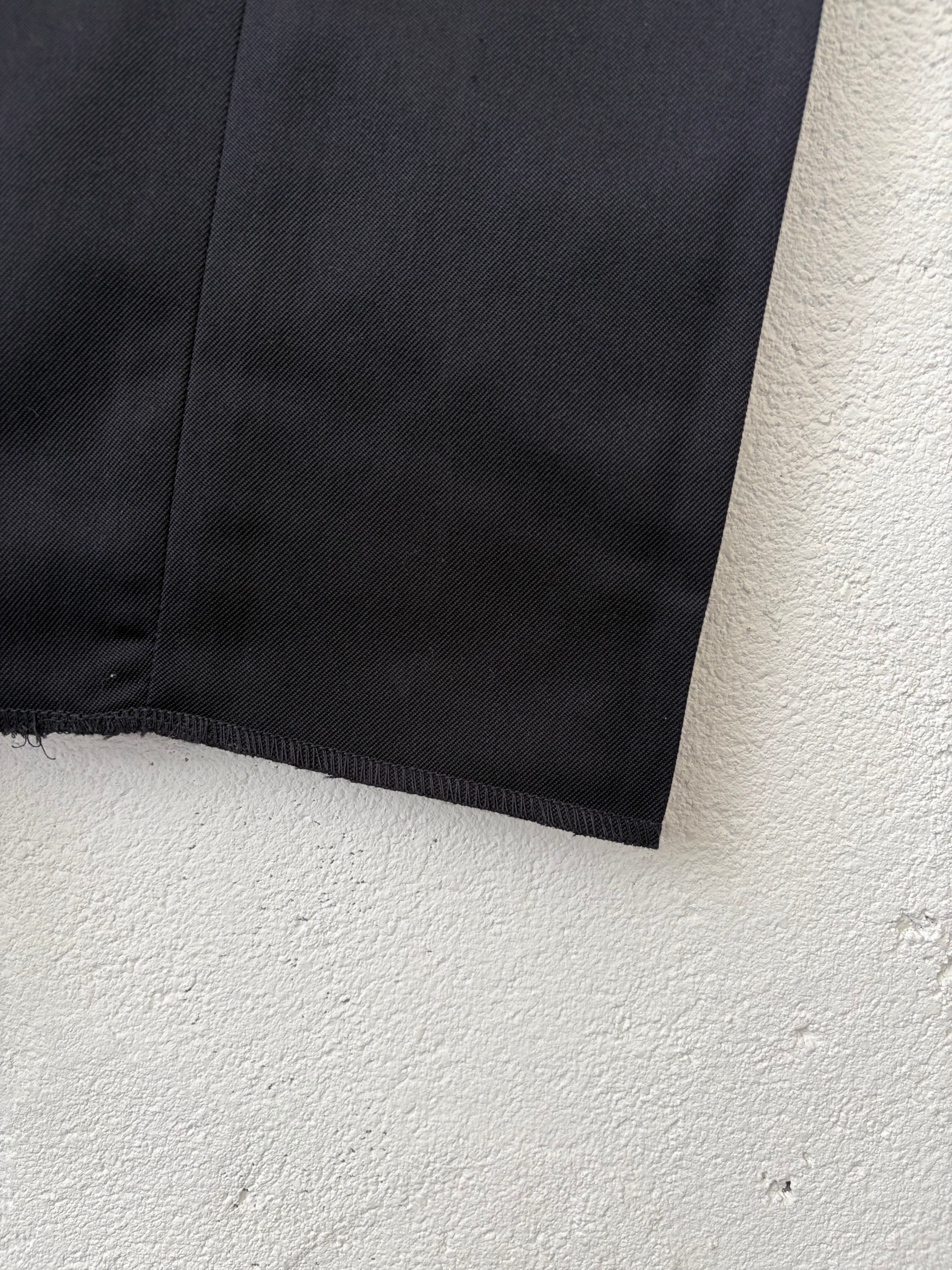 裾は未処理の状態ですのでロールアップして着用いただくか、ご自身で裾上げをお願いいたします。