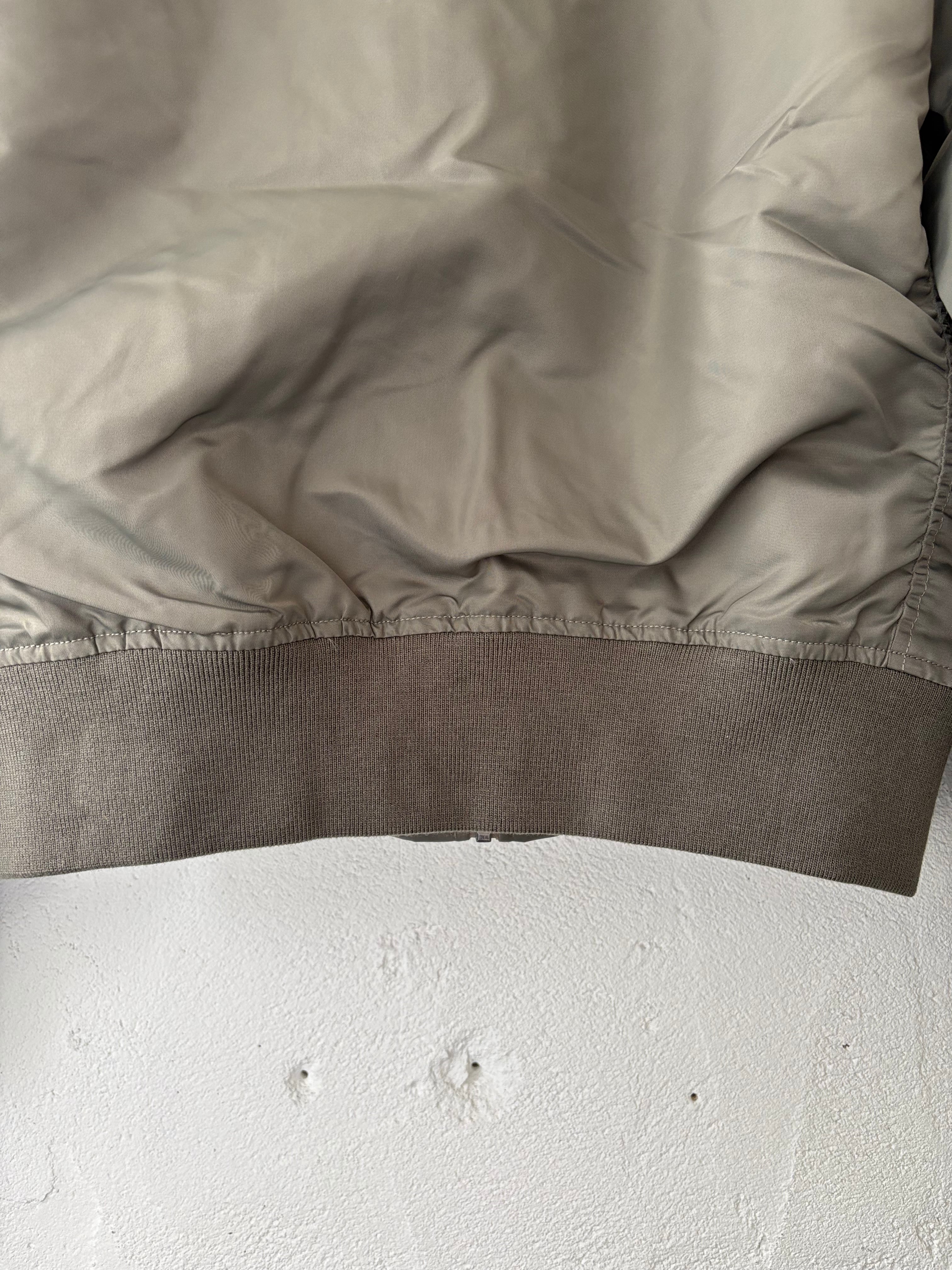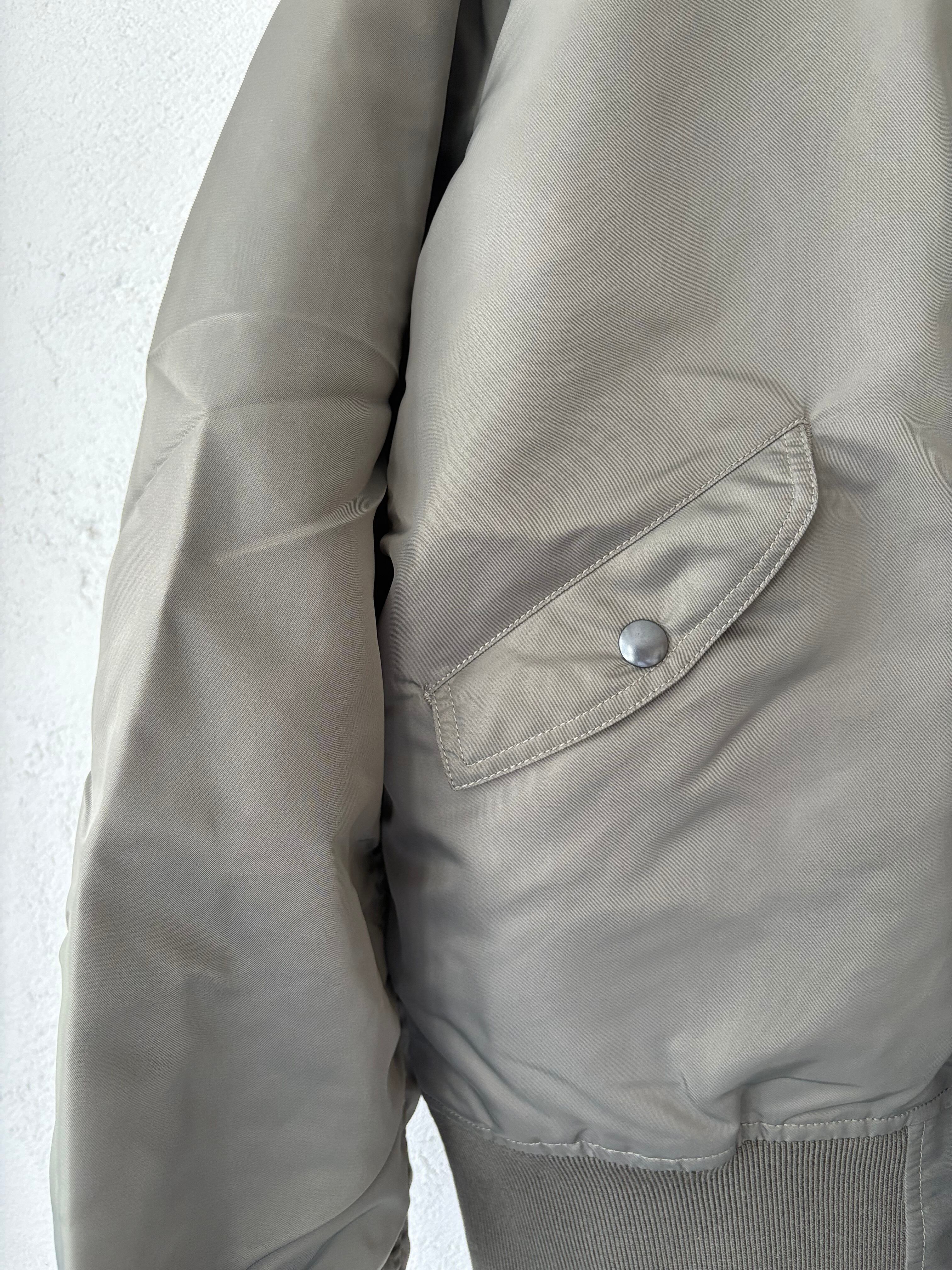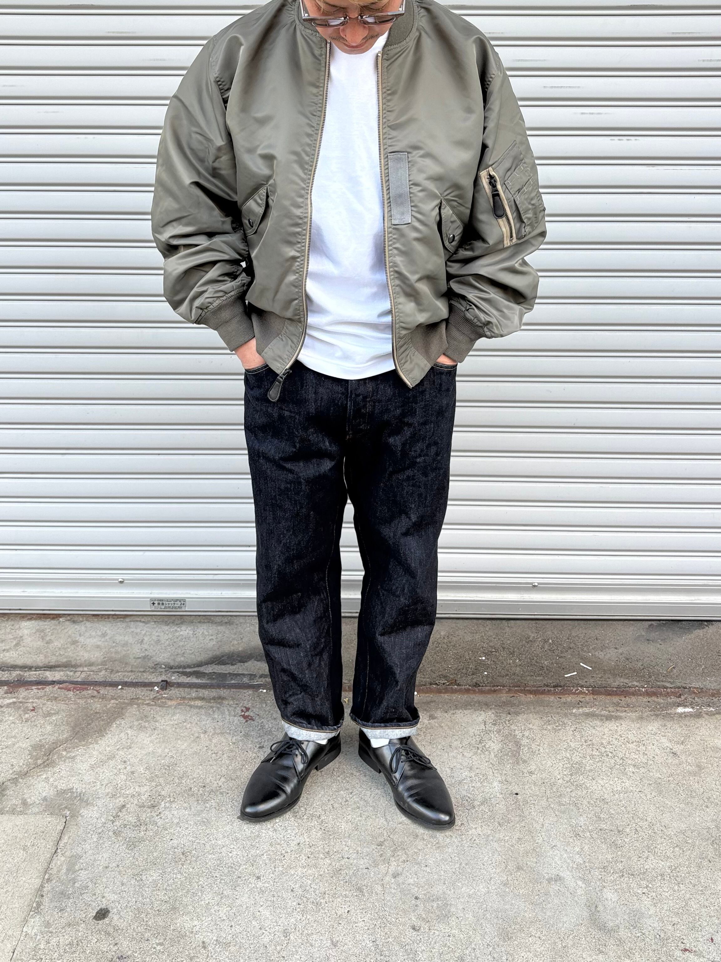 MA-1など一般的なフライトジャケットは防寒用の中綿が詰まっているのに対し、ゴワつきの無いスッキリとしたシルエットが特徴です。